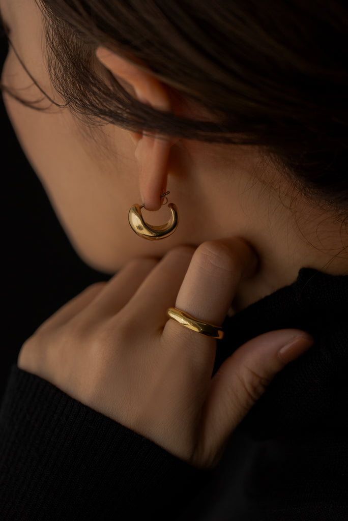 丸みを帯びたフォルムが光をやさしく反射し、顔まわりに上品な輝きを添えてくれます。