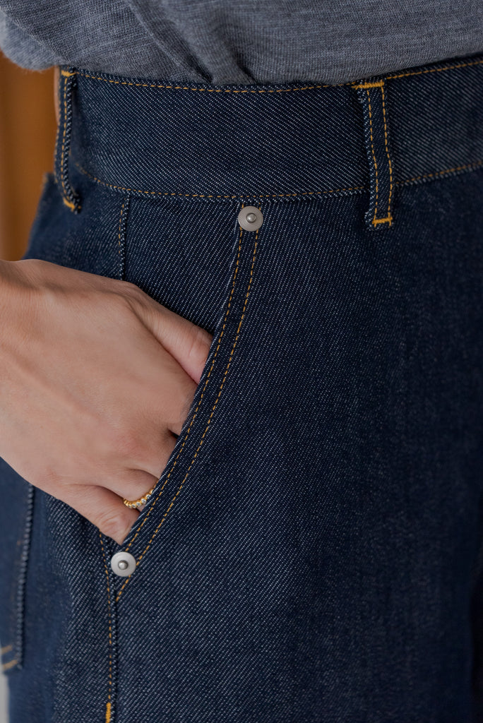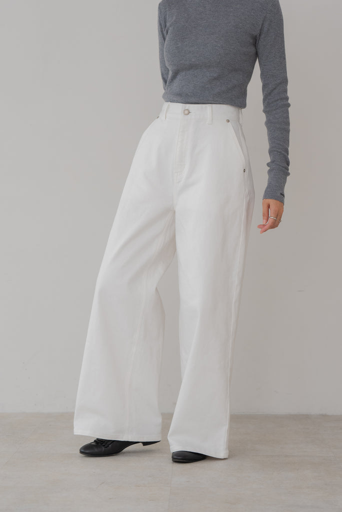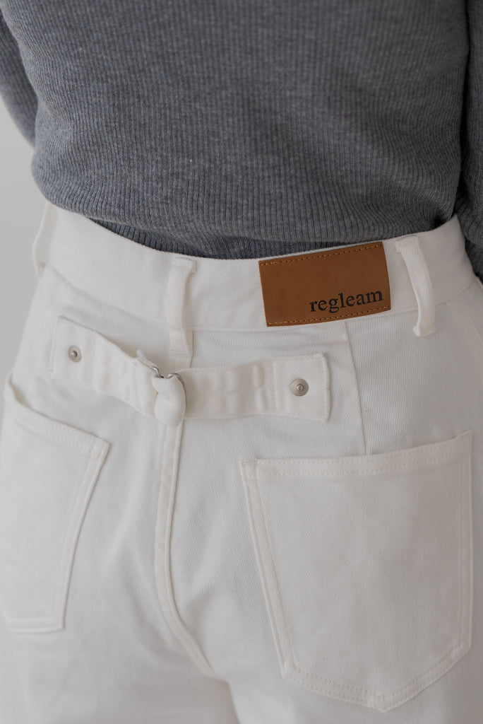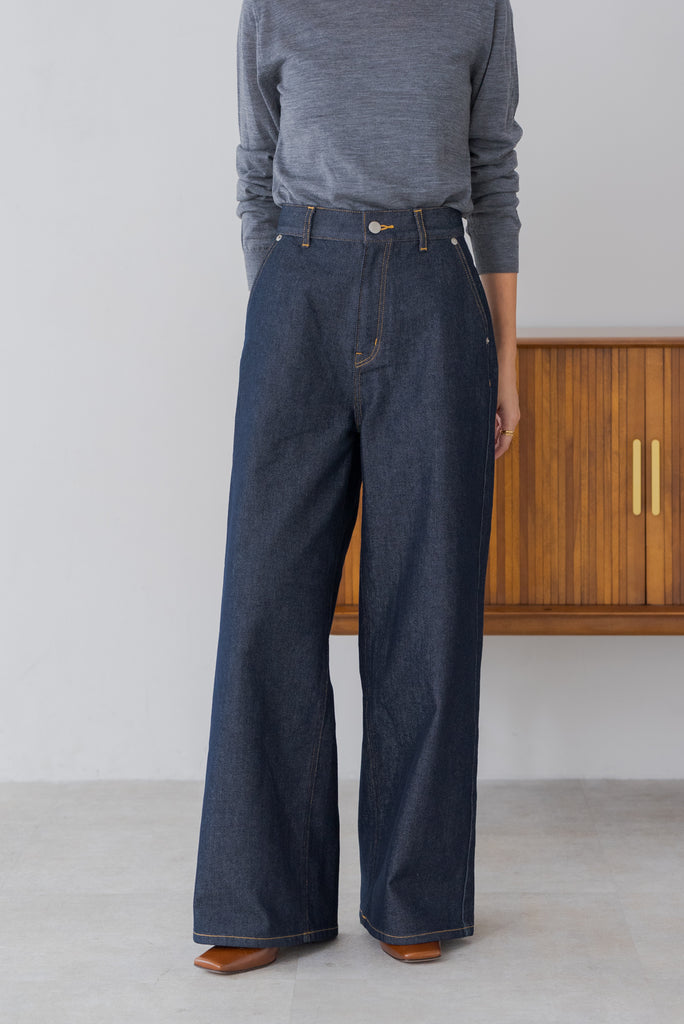 クラシカルなシンチバックディテールが印象的なワイドストレートデニム。