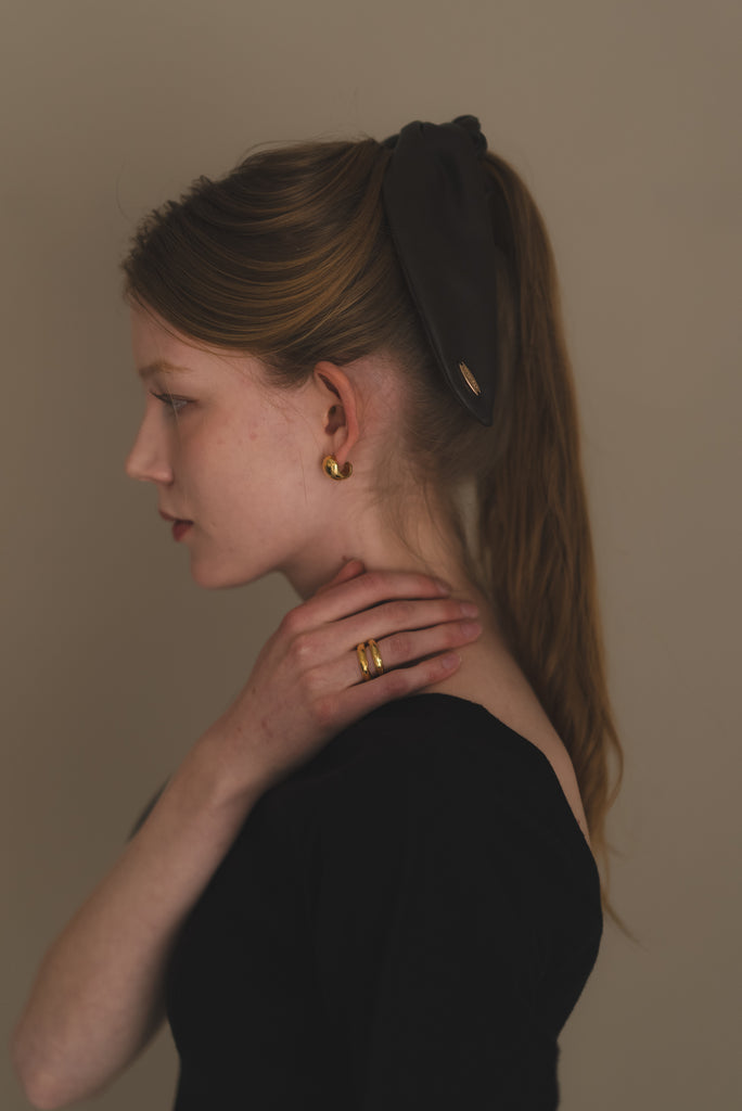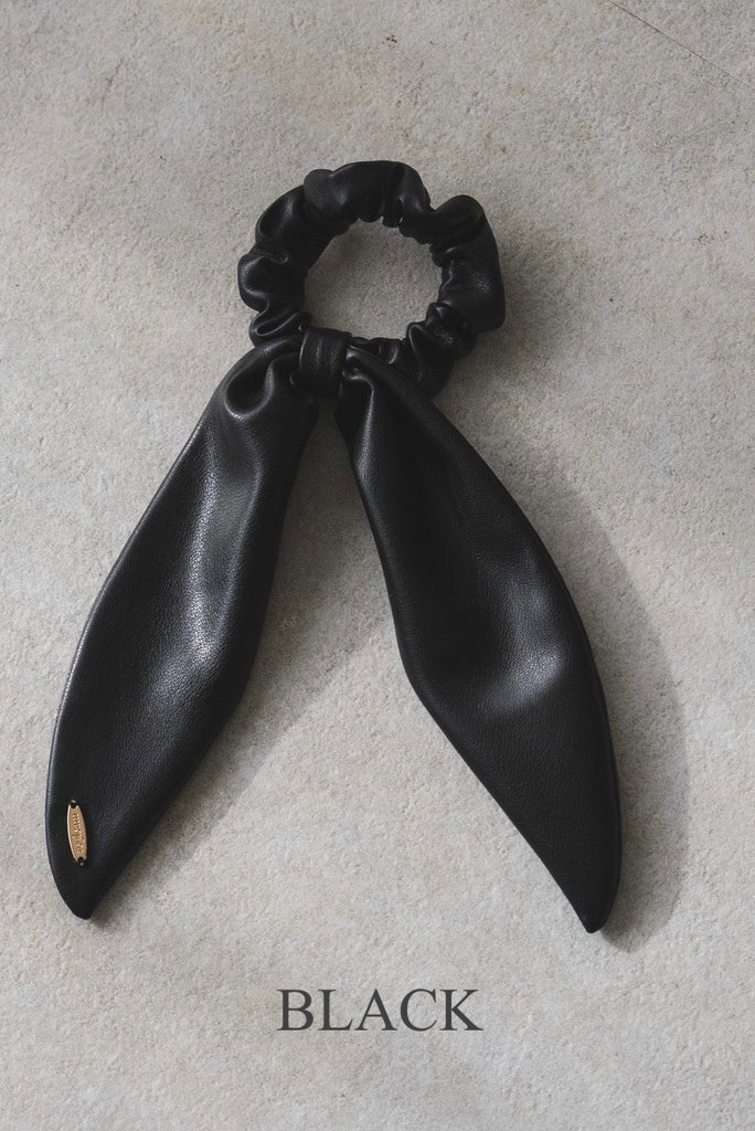 レザー調素材を使用した甘辛なリボンシュシュ。