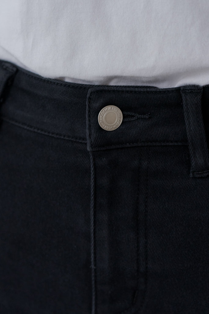 すっきりとしたラインは脚を長く細く見せ、カジュアルにもきれいめにも活躍。