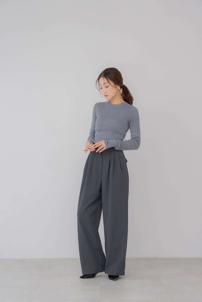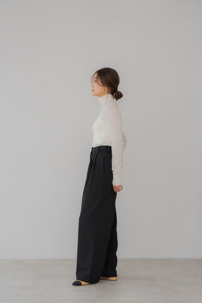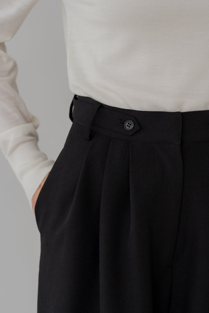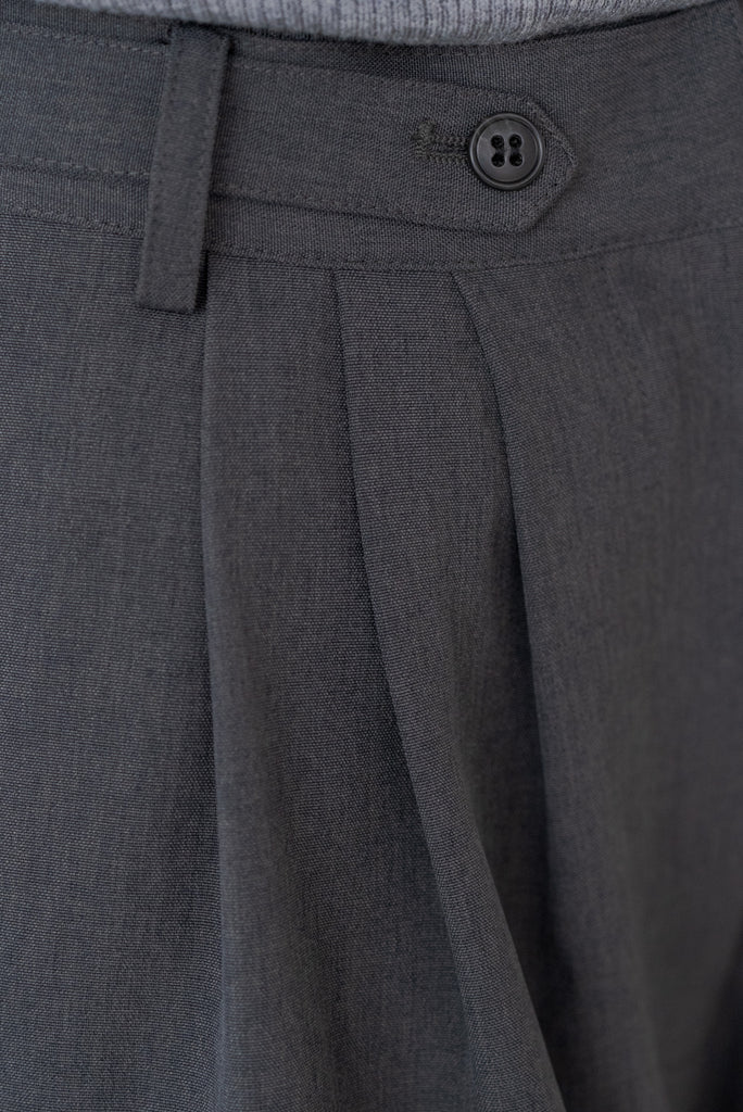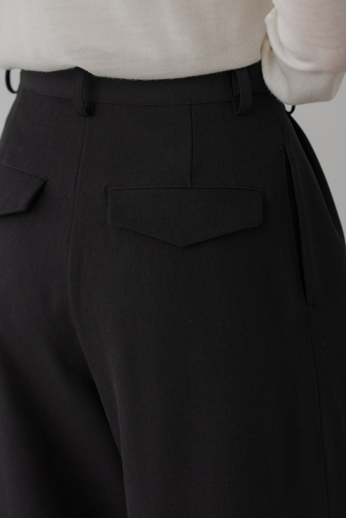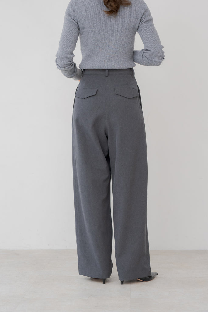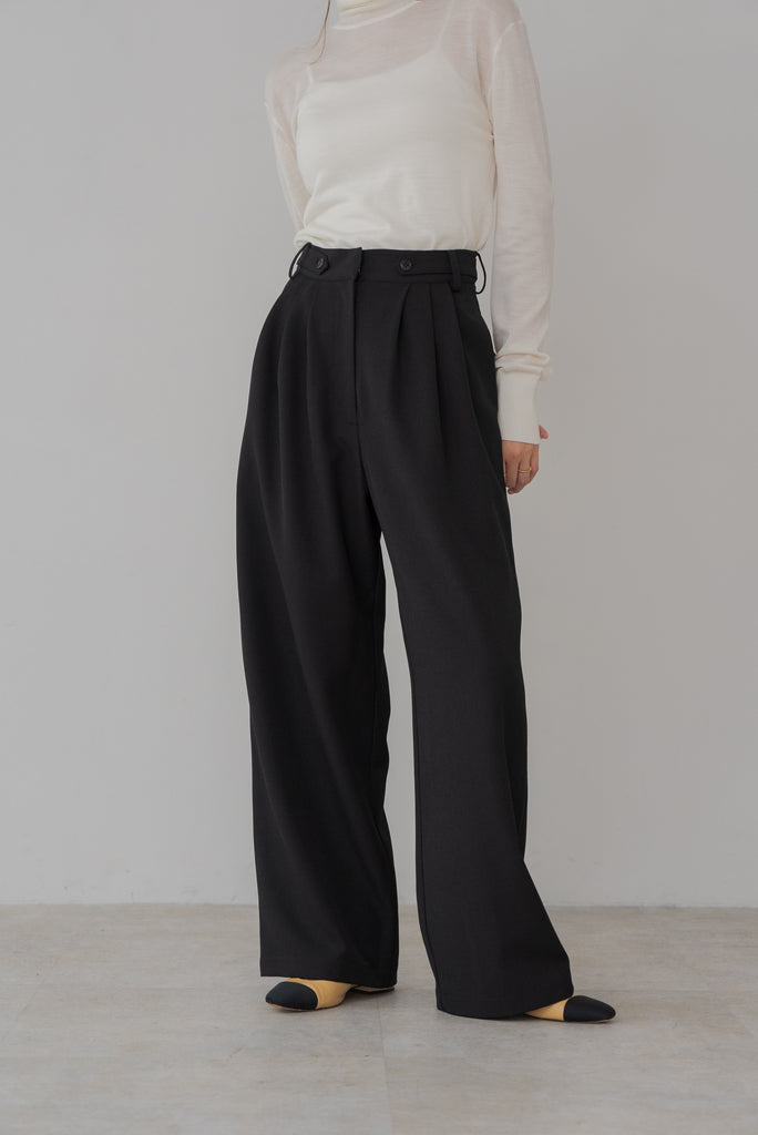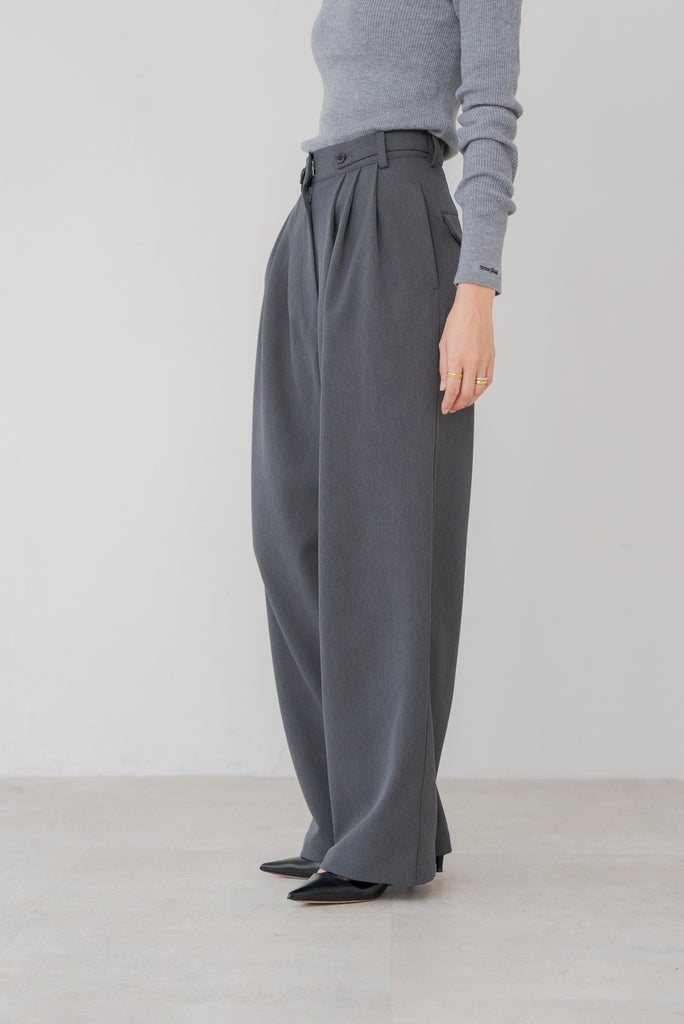 フロントに施された3タックがほどよい立体感を生み出し、気になる腰まわりをカバーしながら、すとんと落ちるワイドシルエットで脚をすっきりと演出します。